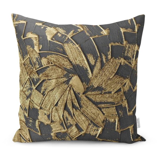 Gold Detaylı Dijital Baskılı Özel Tasarım Dekoratif Yastık Kırlent Kılıfı