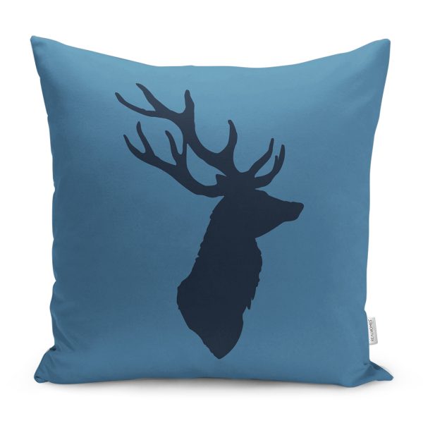 Mavi Zemin Lacivert Geyik Tasarımlı Modern Yastık Kırlent Kılıfı