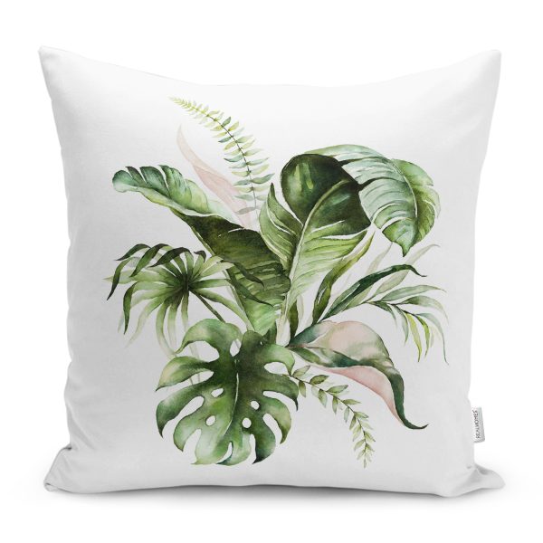 Yeşil Tropik Yaprak Tasarımlı Dekoratif Yastık Kırlent Kılıfı