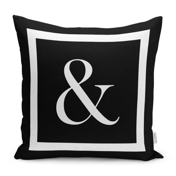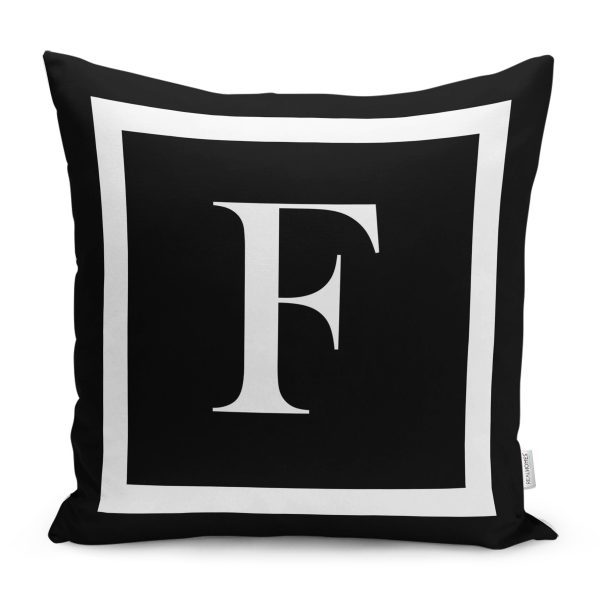 Siyah Zemin Beyaz Çerçeveli F Harfi Dijital Baskılı Kırlent Kılıfı