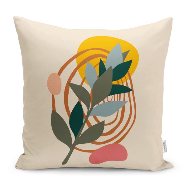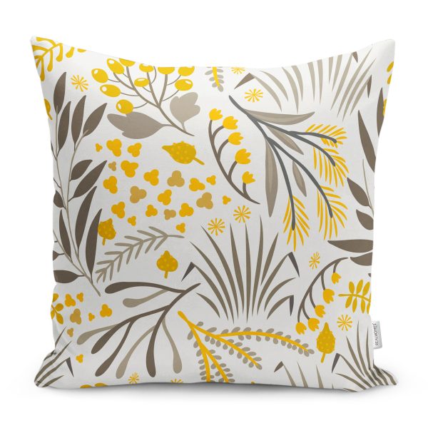 Sarı Detaylı Çiçek Temalı Dijital Baskılı Modern Yastık Kırlent Kılıfı