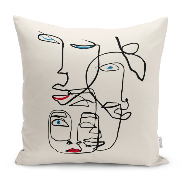 Oneline Karakalem Silüet Çizimli Dekoratif Yastık Kırlent Kılıfı