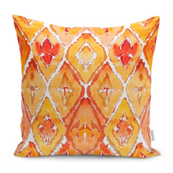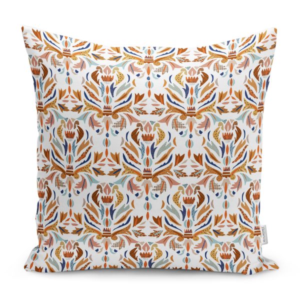 Turuncu Damask Tasarımlı Dijital Baskılı Dekoratif Yastık Kırlent Kılıfı