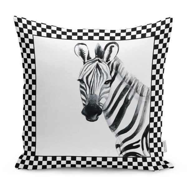 Damalı Çerçeve Motifli Zebra Desenli Dekoratif Yastık Kırlent Kılıfı