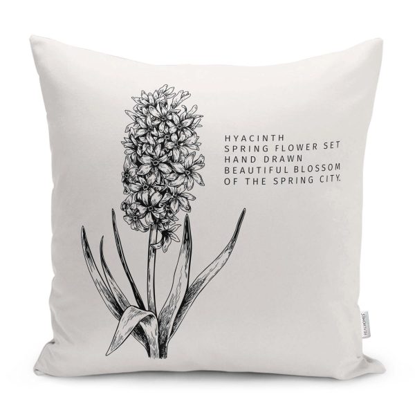 Karakalem Çiçek Çizimli Yazılı Modern Yastık Kırlent Kılıfı