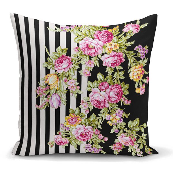 Siyah Beyaz Sütun Temalı Sümbül Motifli Dekoratif Yastık Kırlent Kılıfı