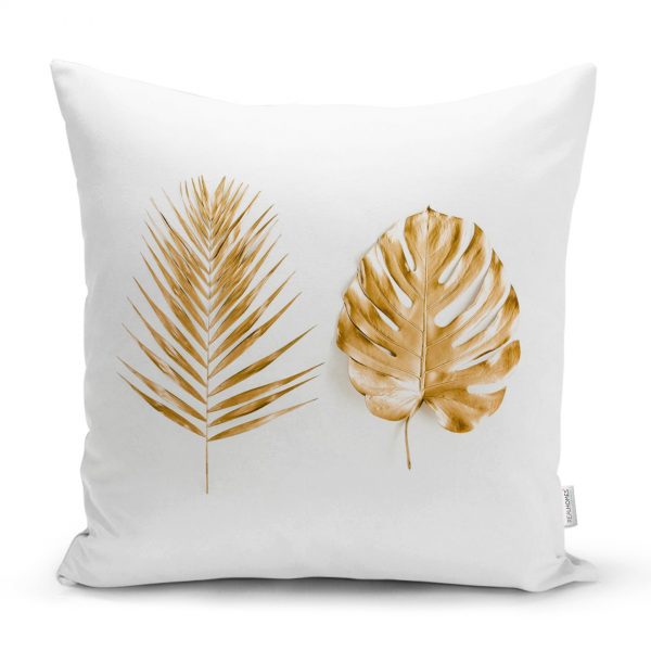 3D Altın Renkli Palmiye Yaprakları Desenli Dekoratif Yastık Kırlent Kılıfı