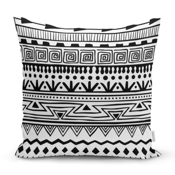 Siyah Beyaz Dekoratif African Motifli Modern Yastık Kırlent Kılıfı