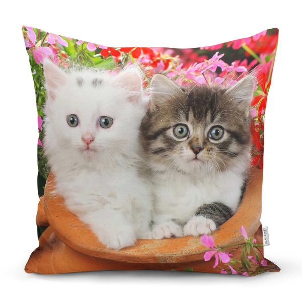 Sevimli Kediler Dijital Baskılı Dekoratif Yastık Kırlent Kılıfı