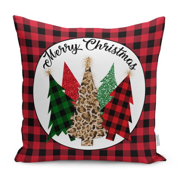 Kırmızı Ekose Mery Christmas Özel Tasarım Modern Yastık Kırlent Kılıfı