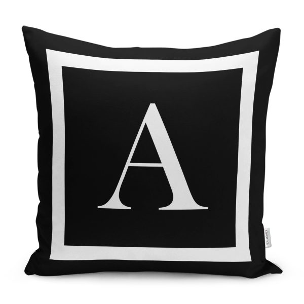 Siyah Zemin Beyaz Çerçeveli A Harfi Dijital Baskılı Kırlent Kılıfı