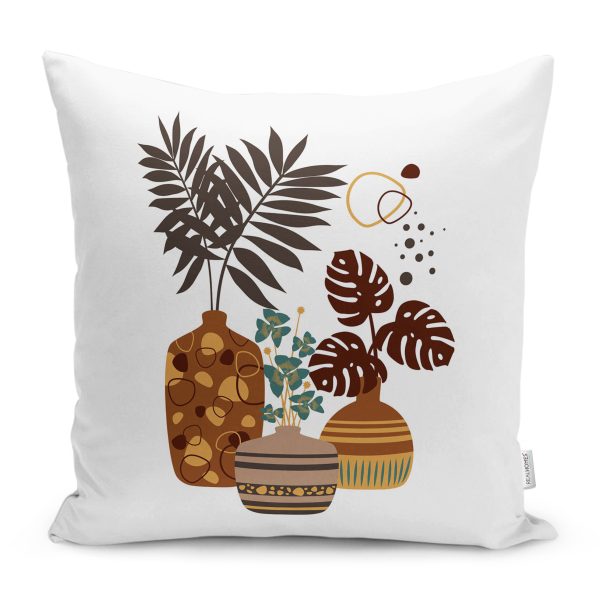 Kavanozdaki Tropik Yapraklar Dijital Baskılı Yastık Kırlent Kılıfı