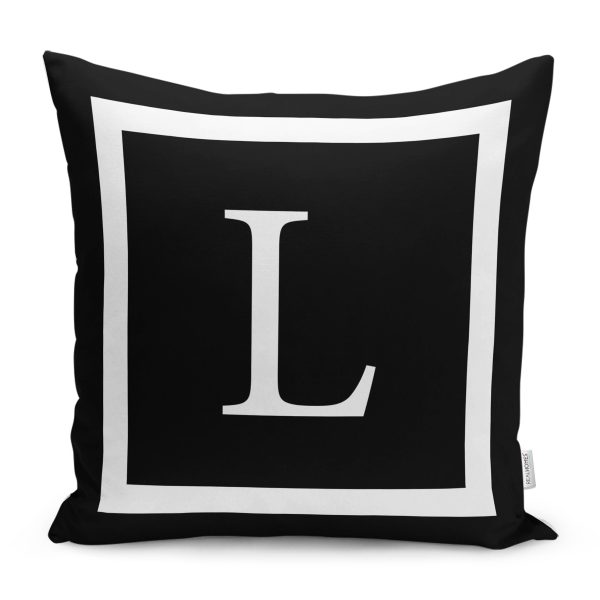 Siyah Zemin Beyaz Çerçeveli L Harfi Dijital Baskılı Kırlent Kılıfı