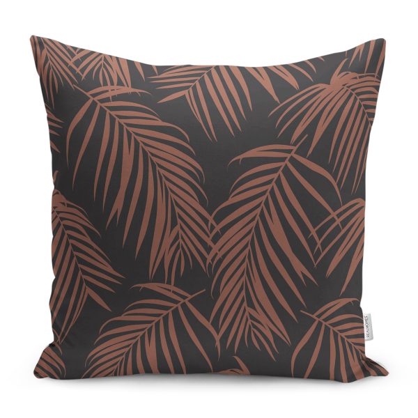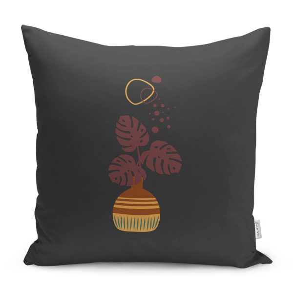 Siyah Zeminli Vazoda Tropik Yaprak Motifli Dekoratif Yastık Kırlent Kılıfı