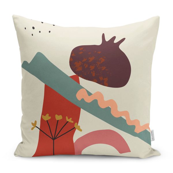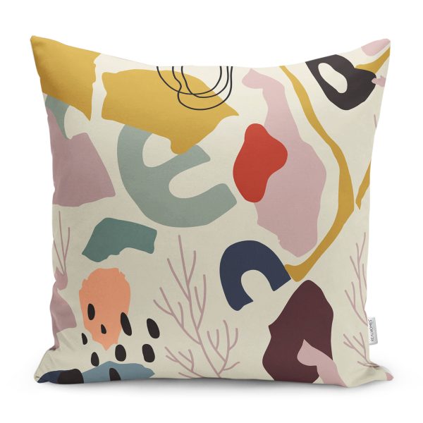 Krem Zeminli Soyut Temalı Yastık Kırlent Kılıfı