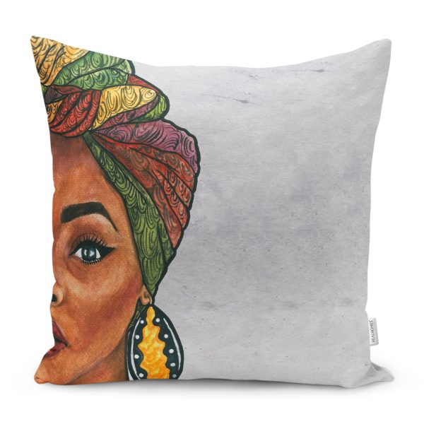 Etnik Afrika Kadın Tasarımlı Dijital Baskılı Yastık Kırlent Kılıfı