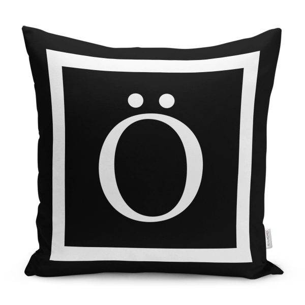 Siyah Zemin Beyaz Çerçeveli Ö Harfi Dijital Baskılı Kırlent Kılıfı