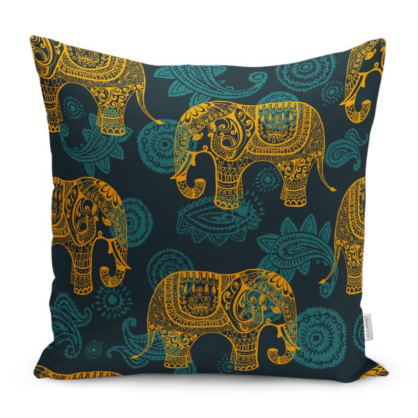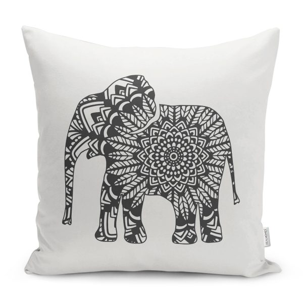 Etnik Motifli Fil Tasarımlı Dijital Baskılı Yastık Kırlent Kılıfı