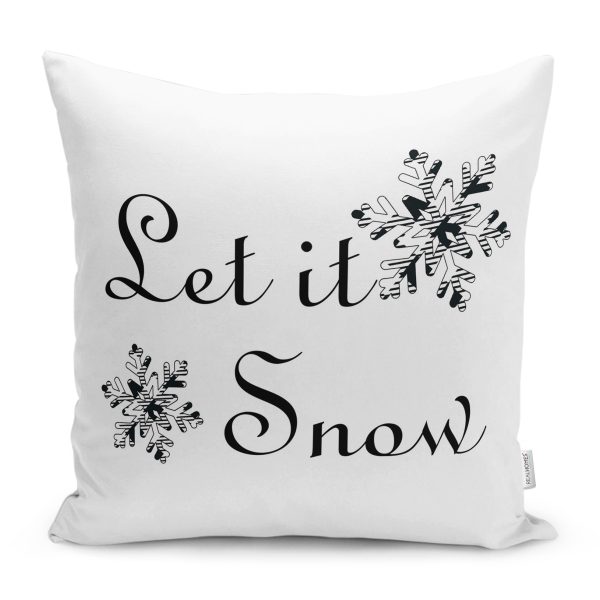 Siyah Beyaz Let it Snow Temalı Dijital Baskılı Yastık Kırlent Kılıfı