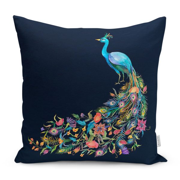 Lacivert Zemin Tavuskuşu Özel Tasarım Yastık Kırlent Kılıfı