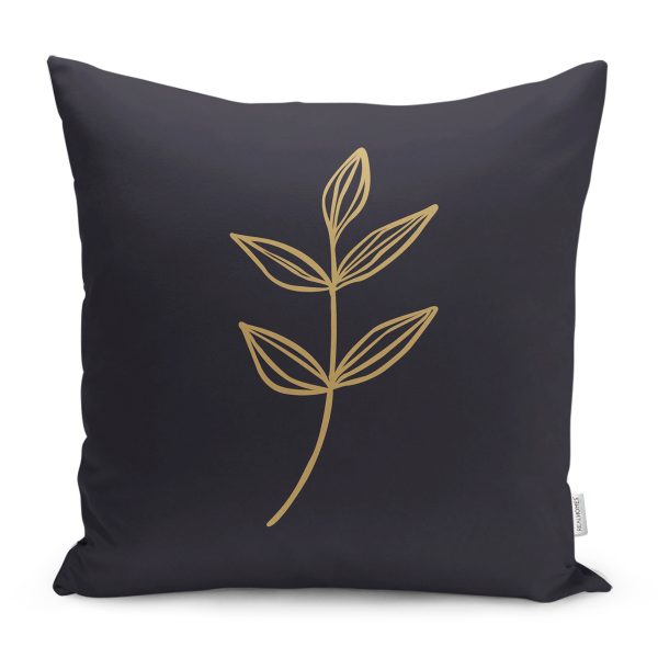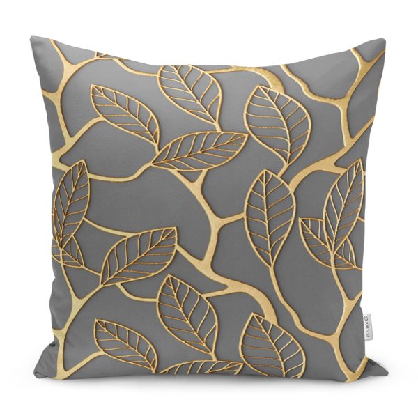 Gold Detaylı Yaprak Motifli Özel Tasarım Dekoratif Yastık Kırlent Kılıfı