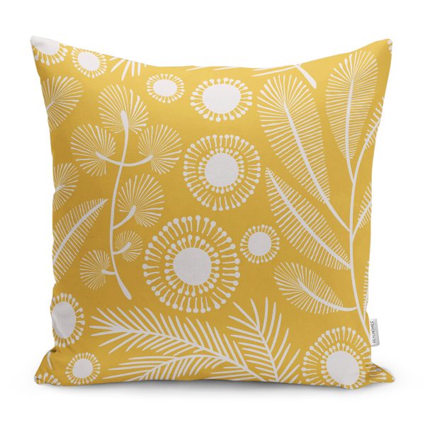 Sarı Zemin Soyut Yosun Motifli Modern Yastık Kırlent Kılıfı