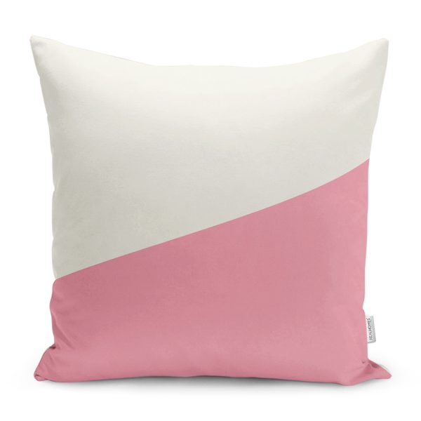 Krem & Pembe Düz Renkli Dijital Baskılı Dekoratif Yastık Kırlent Kılıfı