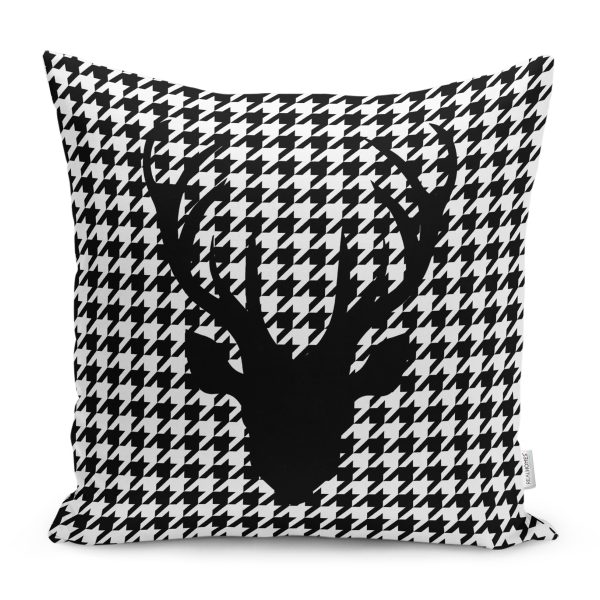 Kazayağı Zemin Geyik Tasarımlı Dekoratif Yastık Kırlent Kılıfı