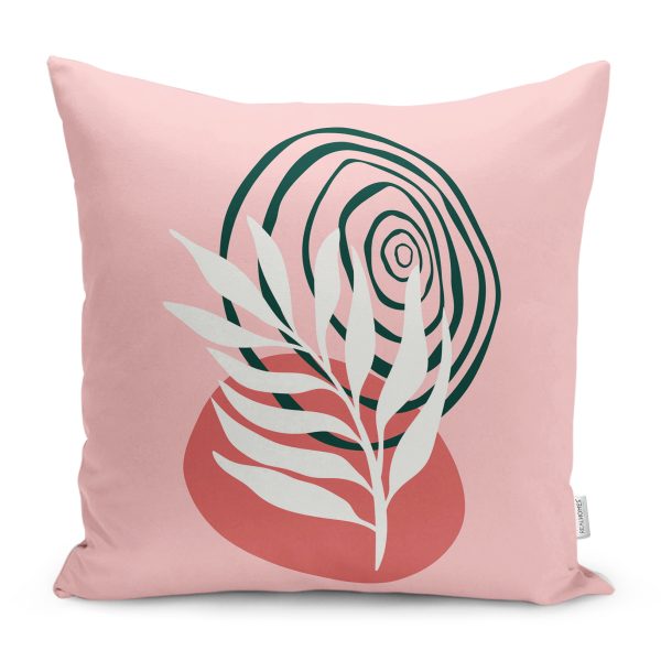 Pembe Zemin Yaprak Çizimli Onedraw Temalı Modern Kırlent Kılıfı