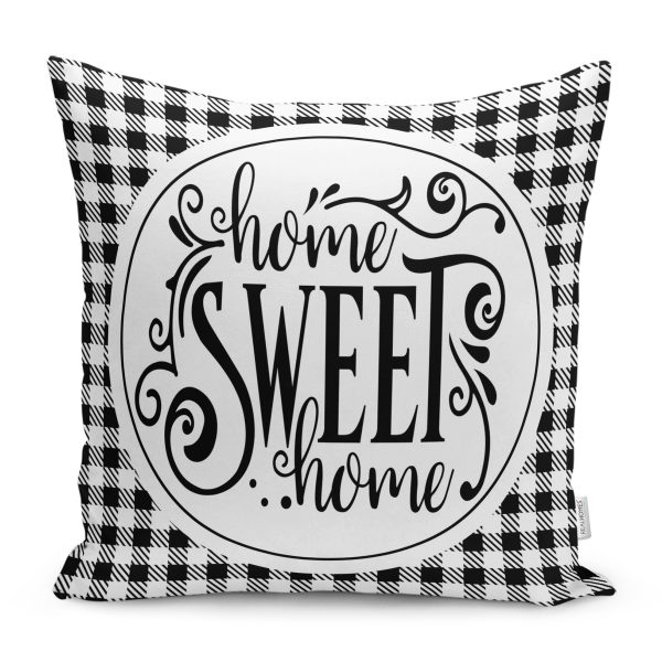 Siyah Beyaz Ekoseli Home Sweet Home Modern Yastık Kırlent Kılıfı