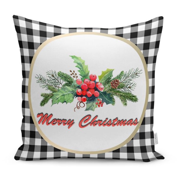 Mery Christmas Ekose Temalı Dijital Baskılı Modern Yastık Kırlent Kılıfı