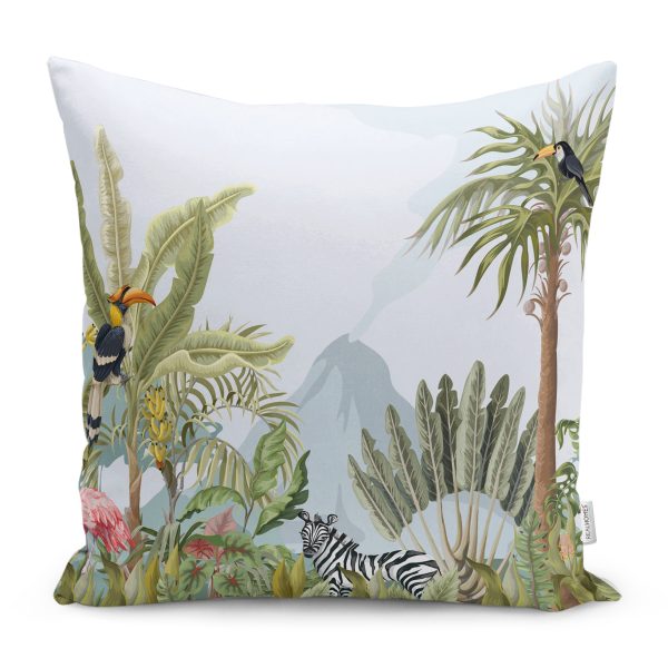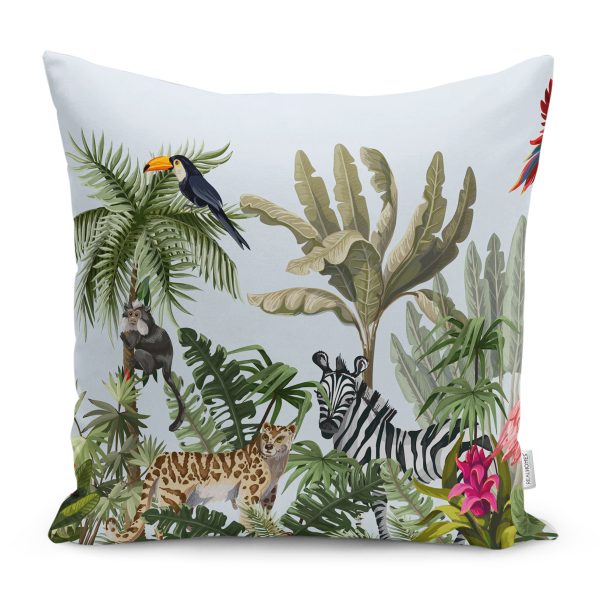 Tropik Hayvan & Yaprak Motifli Dijital Baskılı Kırlent Kılıfı