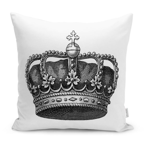 Siyah Beyaz Kral Tacı Özel Tasarımlı Modern Yastık Kırlent Kılıfı
