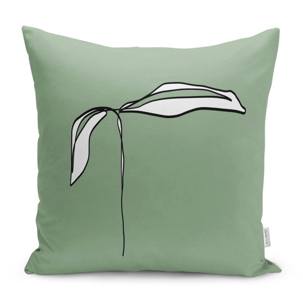 Soyut Yeşil Zeminli Onedraw Yaprak Çizimli Yastık Kırlent Kılıfı