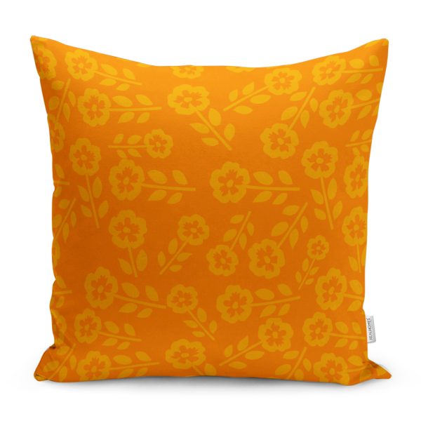 Turuncu Zeminli Papatya Motifli Dekoratif Yastık Kırlent Kılıfı