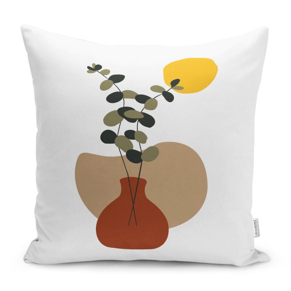 Onedraw Vazo Tasarımlı Çiçek Motifli Modern Yastık Kırlent Kılıfı