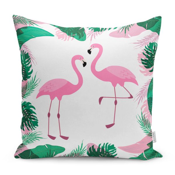 Tropik Yaprak Flamingo Özel Tasarımlı Dijital Baskılı Yastık Kırlent Kılıfı
