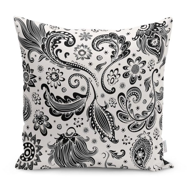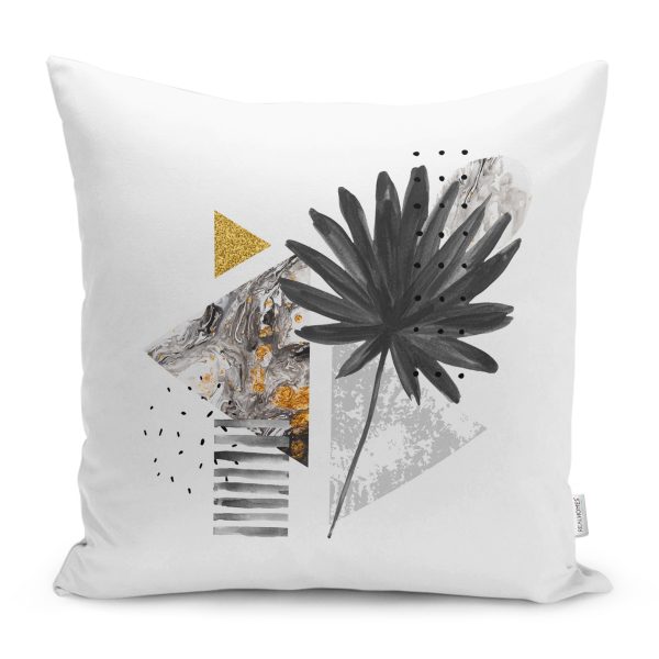 Siyah Beyaz Yaprak Tasarımlı Dekoratif Yastık Kırlent Kılıfı
