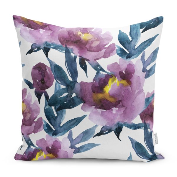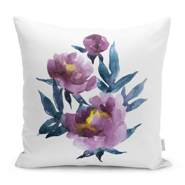 Mor Suluboya Motifli Gül Tasarımlı Modern Yastık Kırlent Kılıfı