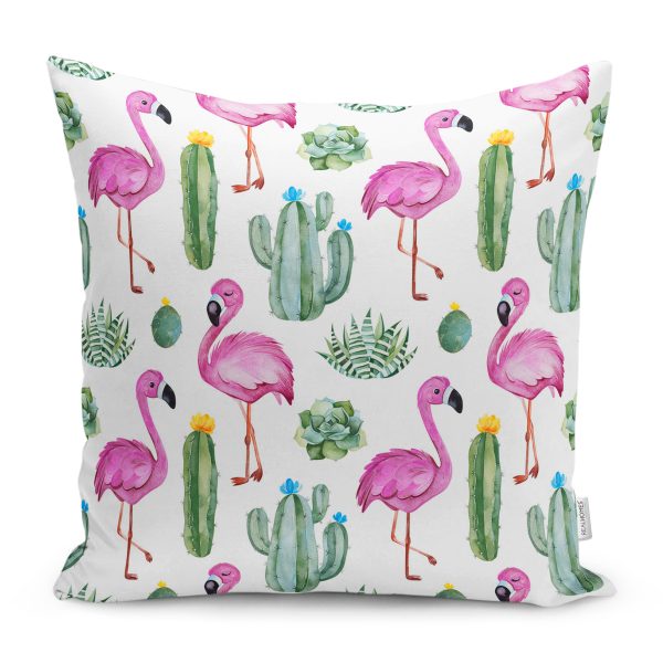 Tropik Kaktüs Flamingo Özel Tasarım Dijital Baskılı Yastık Kırlent Kılıfı