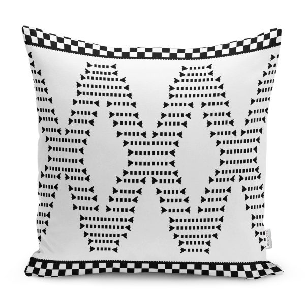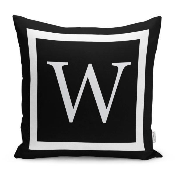 Siyah Zemin Beyaz Çerçeveli W Harfi Dijital Baskılı Kırlent Kılıfı