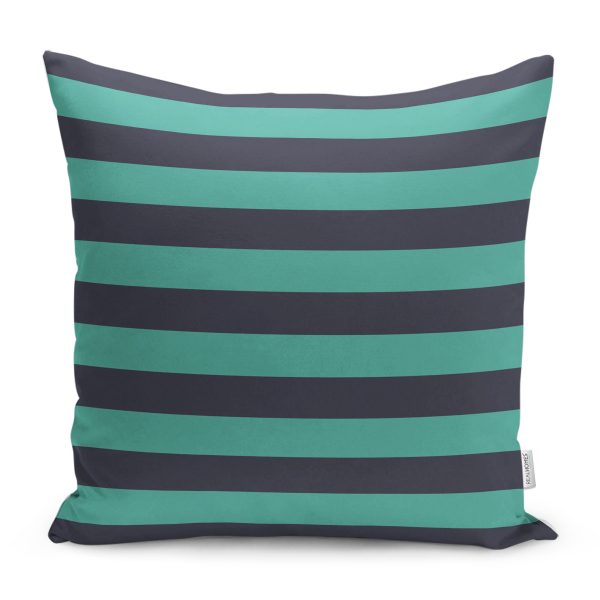 Yeşil & Lacivert Düz Çizgili Özel Tasarım Yastık Kırlent Kılıfı