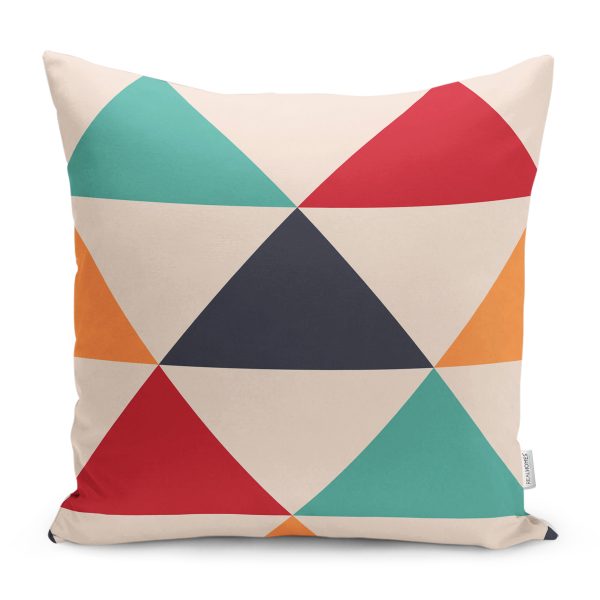 Renkli Geometrik Üçgen Motifli Dijital Baskılı Yastık Kırlent Kılıfı
