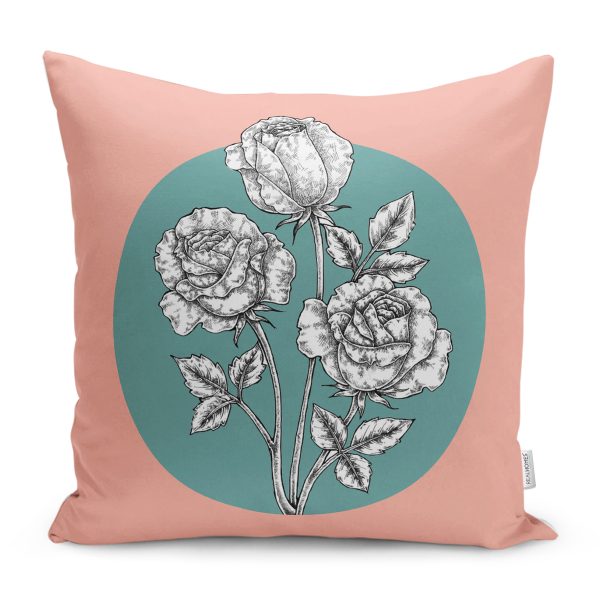 Suluboya Motifli Gül Tasarımlı Modern Yastık Kırlent Kılıfı