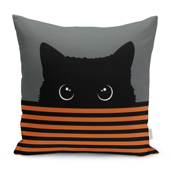 Turuncu Çizgili Karakedi Tasarımlı Dekoratif Yastık Kırlent Kılıfı