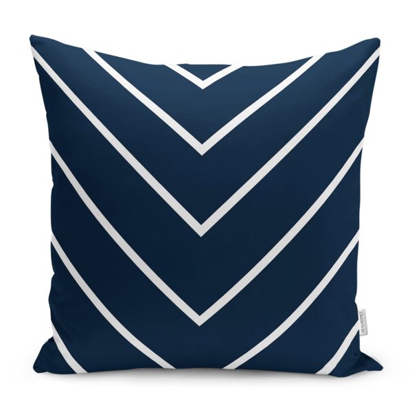 Lacivert Beyaz Çizgili Tasarım Dekoratif Yastık Kırlent Kılıfı