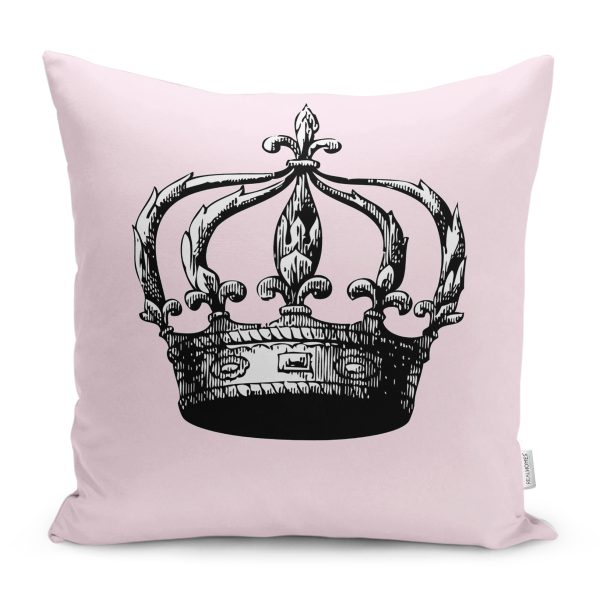 Pembe Zemin Siyah Beyaz Taç Tasarımlı Yastık Kırlent Kılıfı