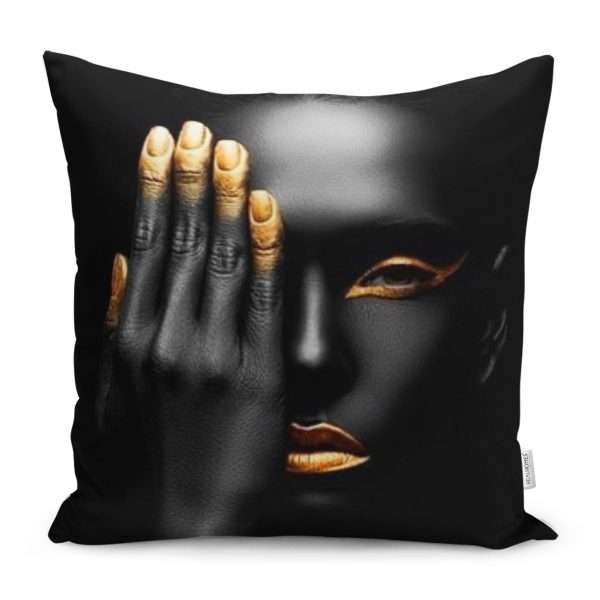 Gold Detaylı Siyahi Kadın Tasarımlı Dekoratif Yastık Kırlent Kılıfı