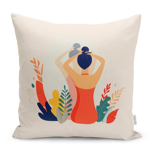 Çiçek Tasarımlı Kadın Figürlü Dekoratif Yastık Kırlent Kılıfı