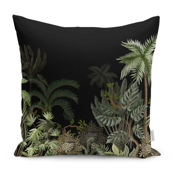 Siyah Zemin Tropik Orman Temalı Dekoratif Yastık Kırlent Kılıfı